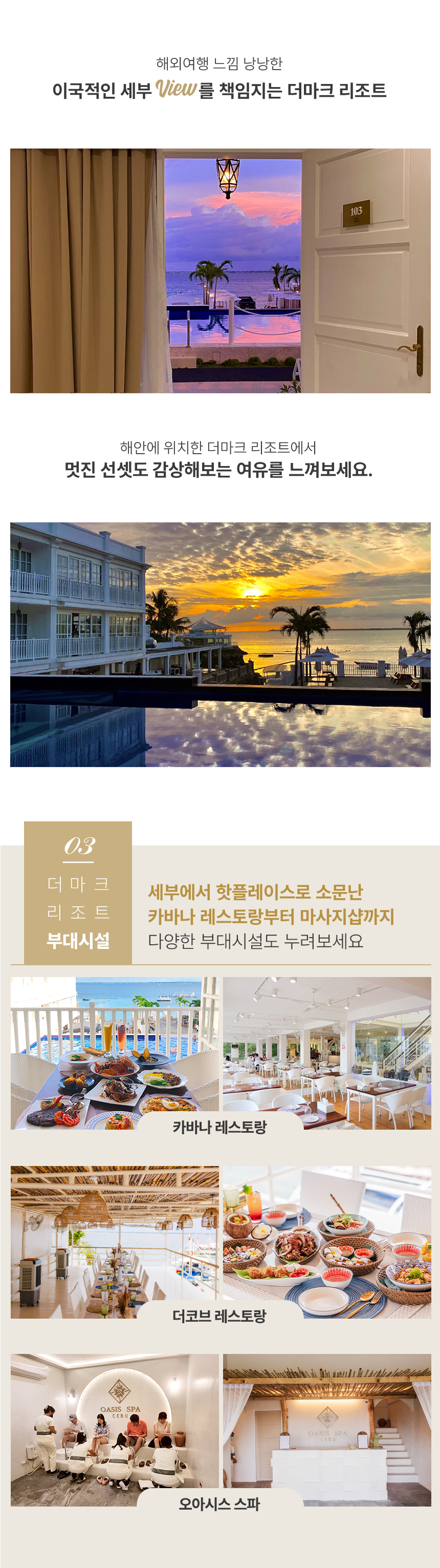 세부 유일 아쿠아리움수영장 보유! 워터스포츠 최적화 더마크 리조트 <스위트룸>